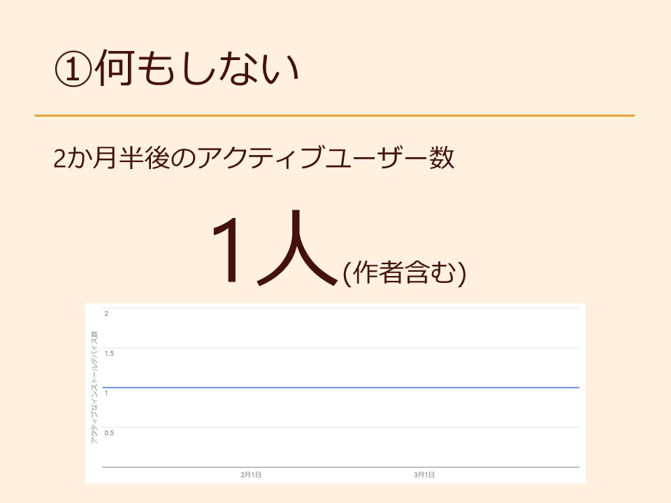 まず1個め、何もしない。無料だから何人か使ってくれるんじゃないかなーと思って何もしませんでした。その結果…